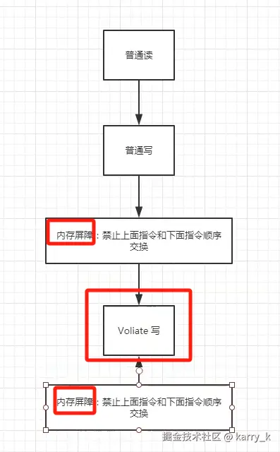写(store)volatile变量 | 在写后插入 StoreLoad + StoreStore 屏障,禁止后面的读/写重排到前面 |