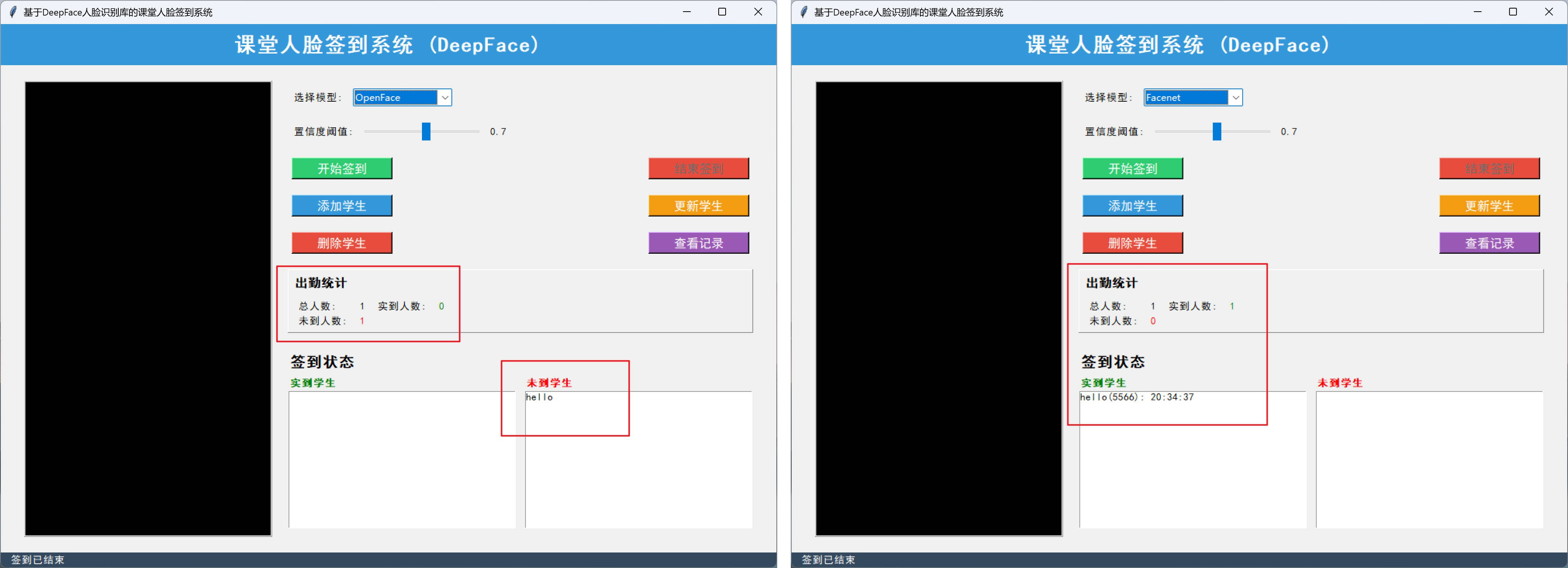 系统的核心优势在于:利用 DeepFace 简化了人脸识别开发难度,通过多线程处理确保实时性,借助 SQLite 实现数据高效管理。未来可进一步优化方向包括:支持多摄像头同时签到、增加活体检测防止照片欺骗、引入更轻量的模型提升运行速度等,以适应更大规模的课堂场景需求。