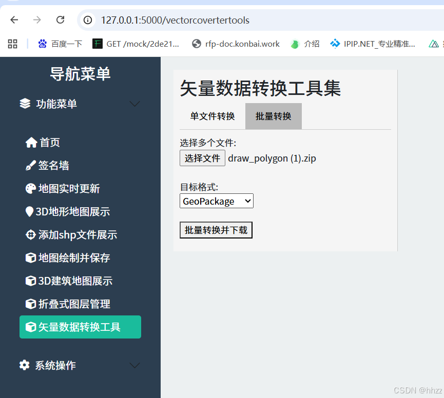 本文是在现有 Flask + 前端页面 的框架里,扩展成一个 常见矢量数据格式转换工具集。