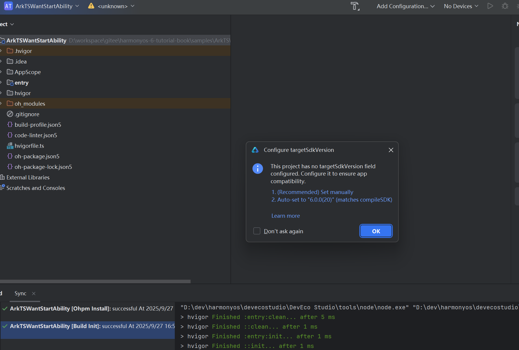 oh-package.json5会自动改为了如下: