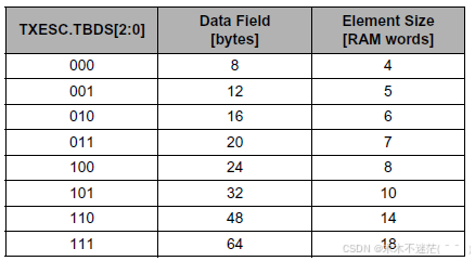 Tx Event FIFO 的每个元素占2 个 32 位字