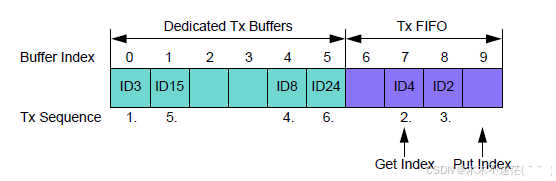 - 低优先级消息先于 M_CAN 的高优先级消息发送,区别于 CAN 总线原生的仲裁优先级逻辑