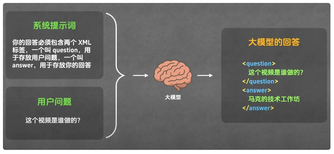 为什么模型拿到用户的问题后会先思考再行动,而不是直接行动?是因为模型就是这么训练的吗?不是的,这和模型的训练过程是没有关系的。 ReAct 模式的实现奥秘,并非依赖大模型的训练过程,而是集中在 "系统提示词" 上。系统提示词会与用户问题一同传递给大模型,规定大模型的角色、运行规则及环境信息。比如,若在系统提示词中要求 "回答需包含 Question(存放用户问题)和 Answer(存放回答)两个 XML 标签",大模型就会遵循该规范输出结果。