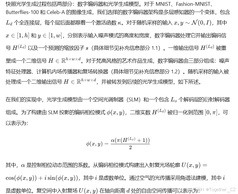本文提出光学生成模型 ,通过光学模拟计算 替代部分数字计算,显著降低能耗并提升生成速度。