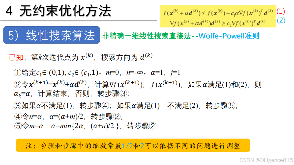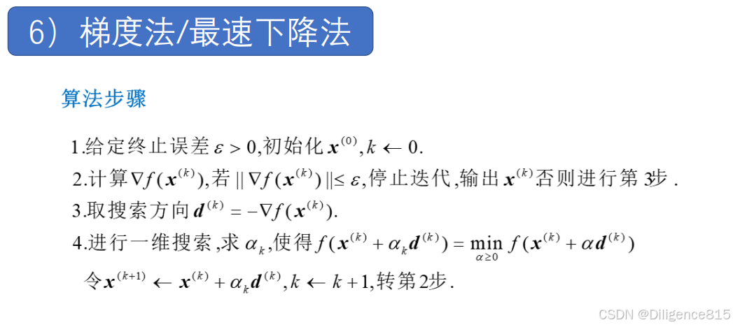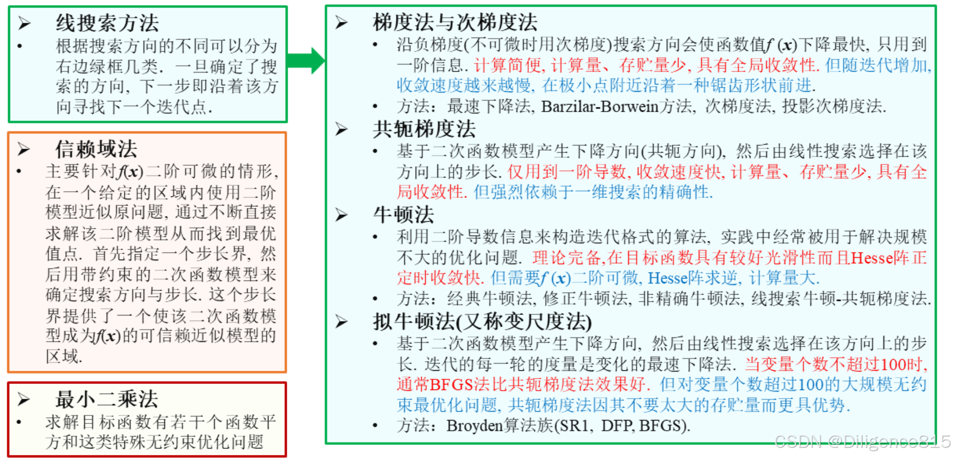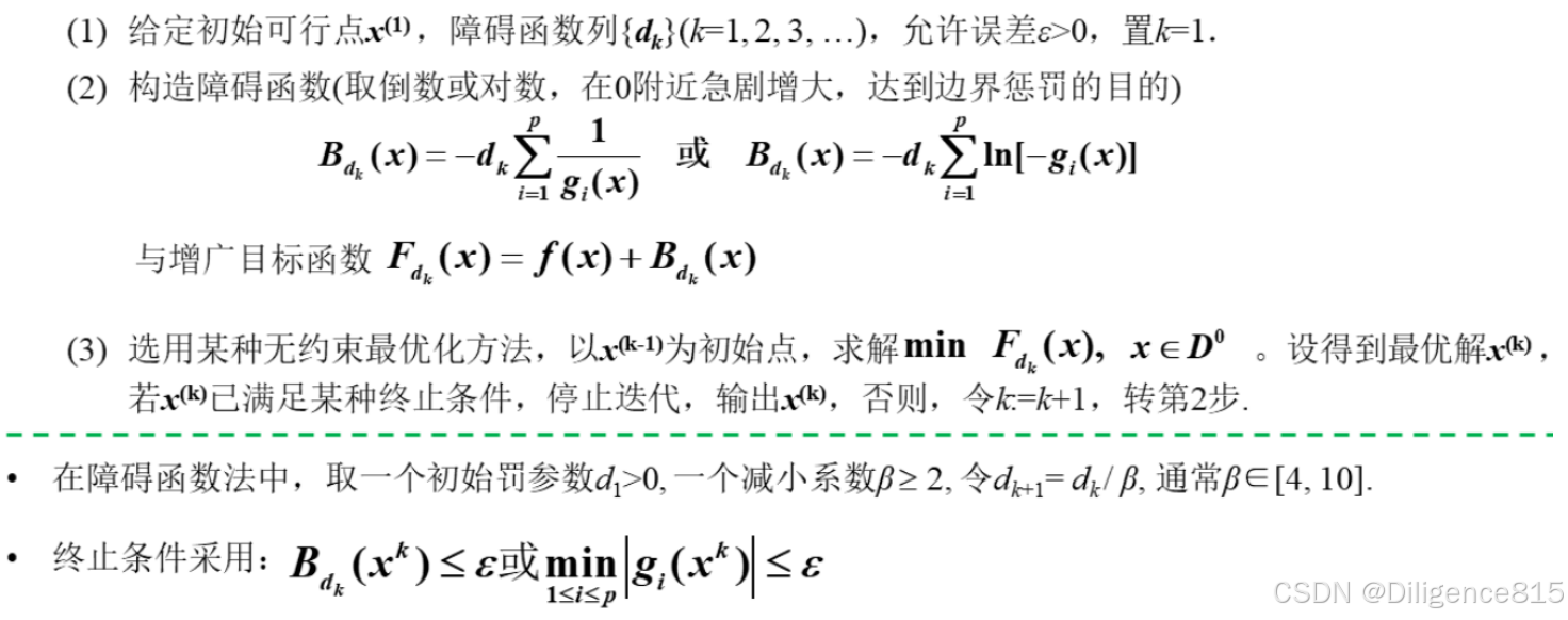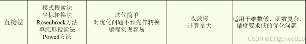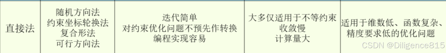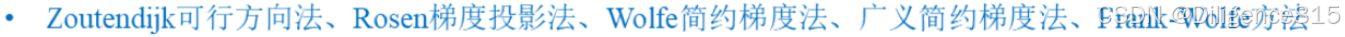 (1)直接法:可行域直接求解目标函数最优解,初始点、迭代方向、步长,同时保证可行性