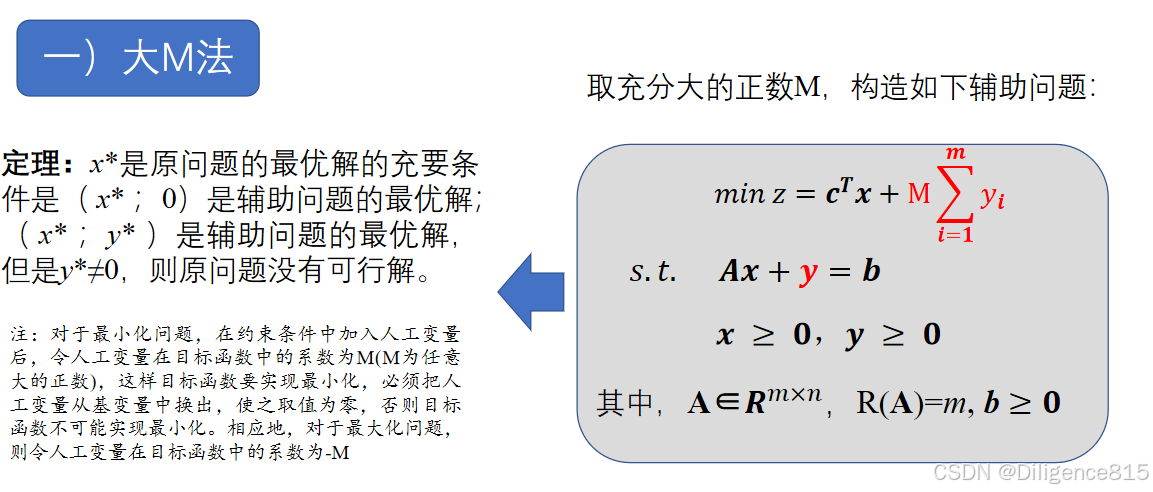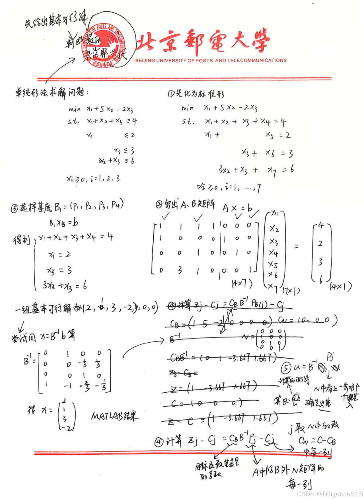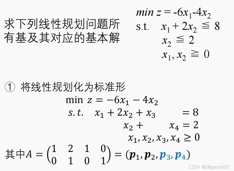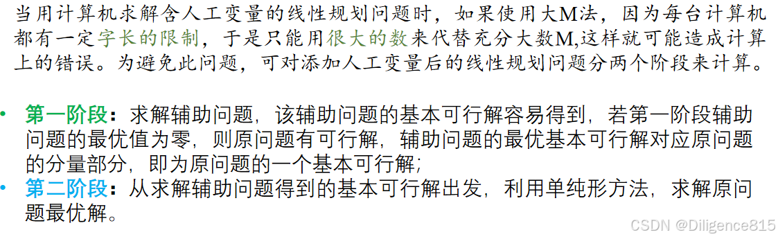 ②如何给出初始基可行解?------矩阵运算 或者 手算法,具体可见习题,大M法,两阶段法