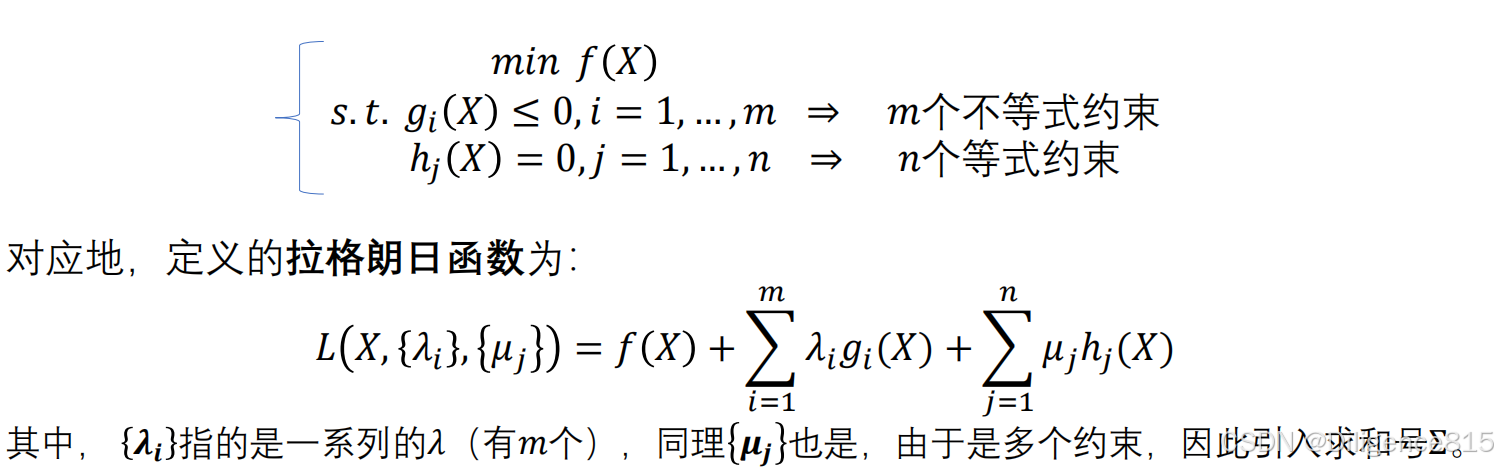 一般的约束问题 :KKT条件,最优解的**必要条件,**对于凸规划问题就是充要条件了