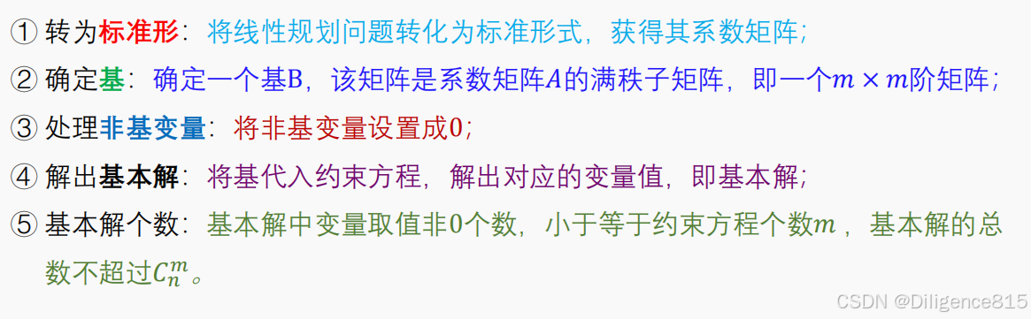基本可行解 :解出的基本解,有一部分满足变量的非负约束,即解大于等于0,这些解称为基本可行解;