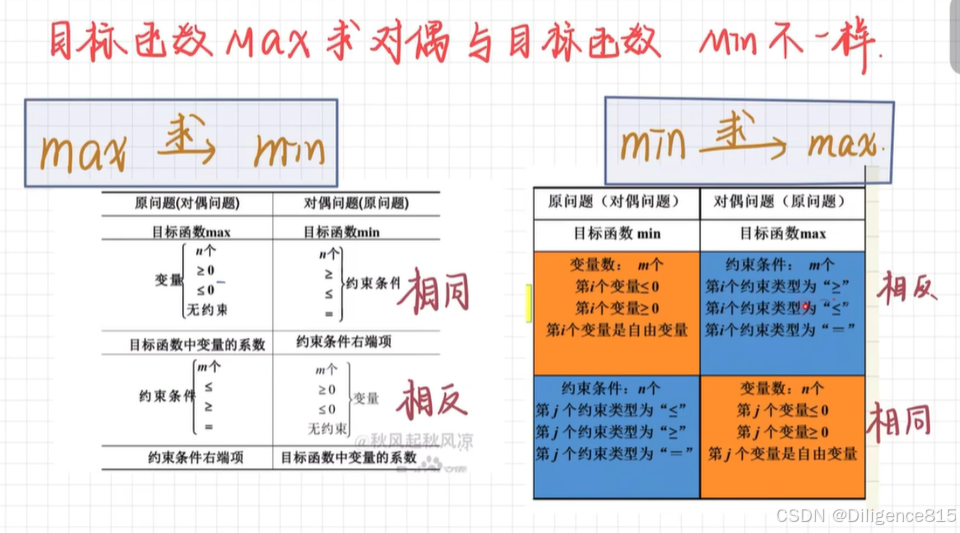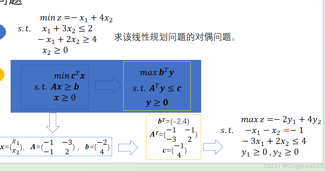 任一线性规划问题都存在另一与之伴随的线性规划问题,它们组成一对互为对偶的线性规划问题 线性规划的对偶问题与原问题互为对偶,线性规划的原问题与对偶问题地位具有对称关系