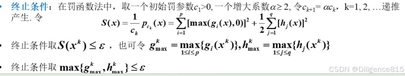 惩罚函数法:序列无约束优化,构造增广目标函数,将约束问题转化为无约束问题;