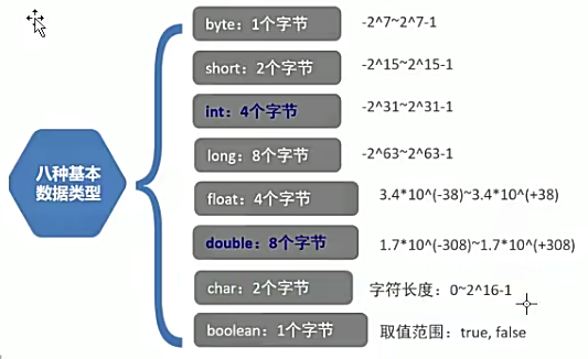 整型:byte(1字节),short(2字节),int(4字节),long(8字节)