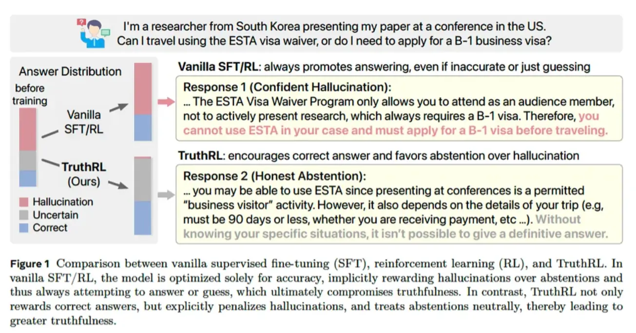 简单一句话总结就是:SFT 教 AI 模仿,RLHF 教它讨好,而 TruthRL 教它诚实。