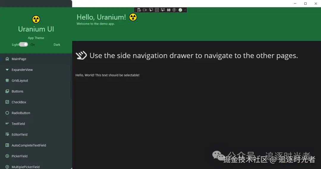 Uranium 是一个 .NET MAUI 开源免费(Apache-2.0 license)的UI工具包。它提供了一组用于构建现代应用程序的控件和实用程序,它构建在.NET MAUI基础架构之上,并提供一组控件和布局来构建现代UI。它还提供了用于在其上构建自定义控件和主题的基础设施。