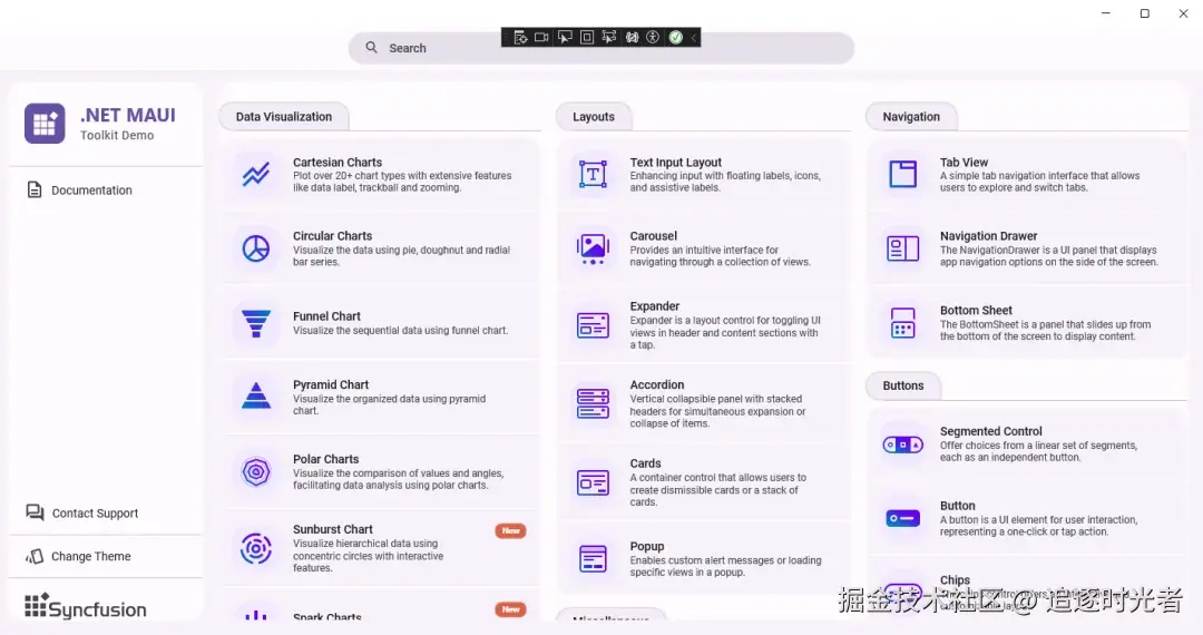 Syncfusion.Maui.Toolkit 是一套开源(MIT license)、免费、美观、高性能的跨平台 .NET MAUI 控件库,旨在简化 Android、iOS、macOS 和 Windows 跨平台应用开发。通过使用此工具包,开发者可以轻松构建美观且功能丰富的应用程序,从而缩短开发时间,同时确保跨平台的无缝和引人入胜的用户体验。