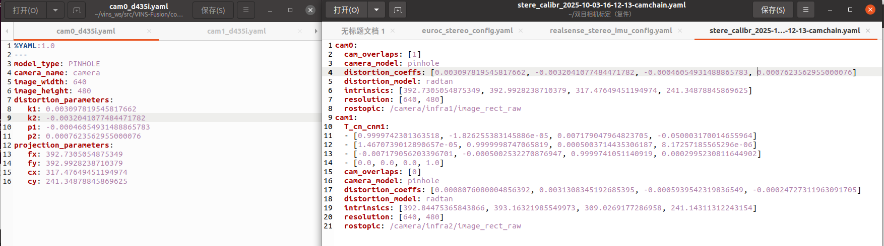 本文主要为自用,会省略一些众所周知的细节。标定程序的安装可以参考下面我的步骤,vins_fusion暂时只复现了双目+IMU,可跳转至"双目相机标定"部分进行参考
