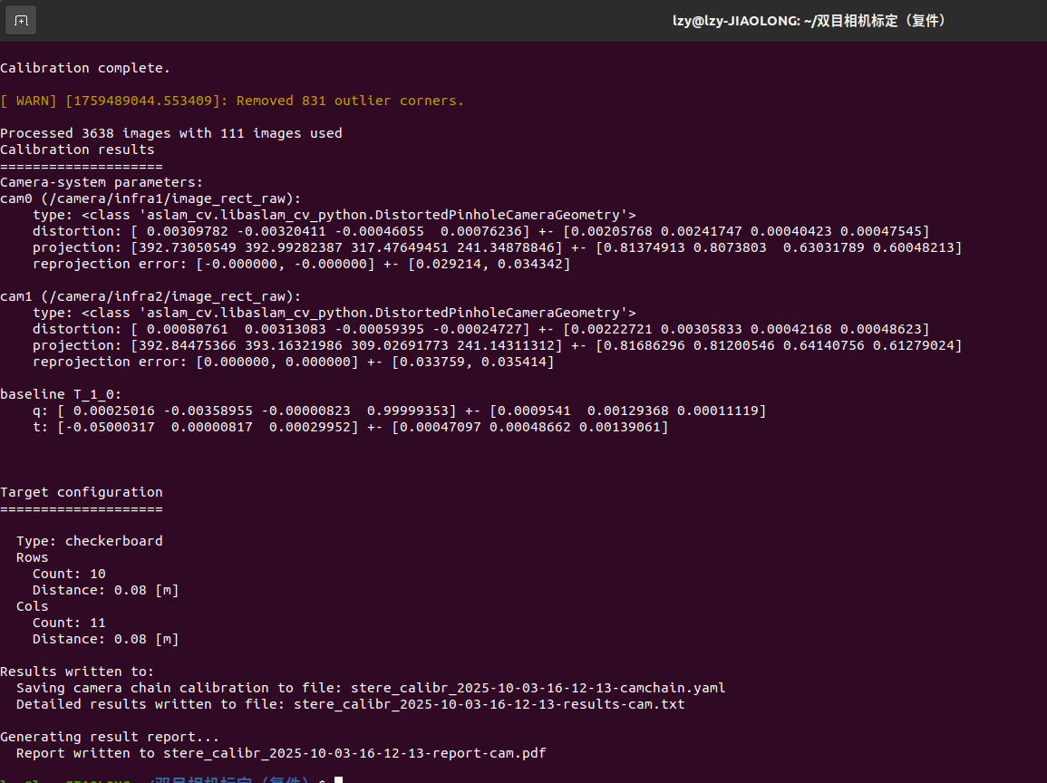 rosrun kalibr kalibr_calibrate_imu_camera --bag stere_calibr_2025-10-03-16-12-13.bag --cam camchain.yaml --imu imu.yaml --target new_checkboard.yaml --bag-from-to 10 130 --show-extraction