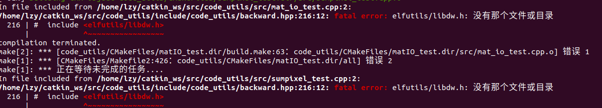 /home/lzy/catkin_ws/src/code_utils/include/code_utils/backward.hpp:216:12: fatal error: elfutils/libdw.h: 没有那个文件或目录