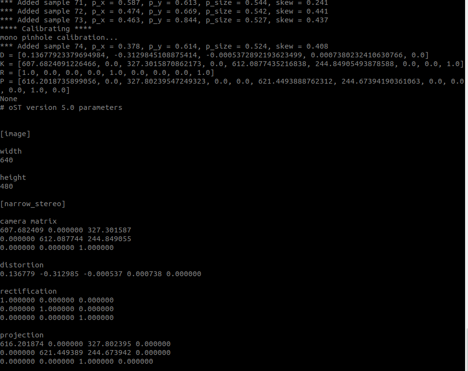 rosrun camera_calibration cameracalibrator.py --size 5x8 --square 0.045 image:=/camera/color/image_raw