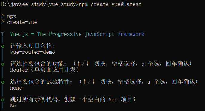也可以先创建项目,再通过如下命令安装,不过这种方式就需要手动添加router文件夹和路由相关代码: