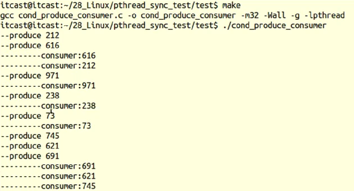 pthread_cond_signal(&has_data); // 将等待在该条件变量上的一个线程唤醒