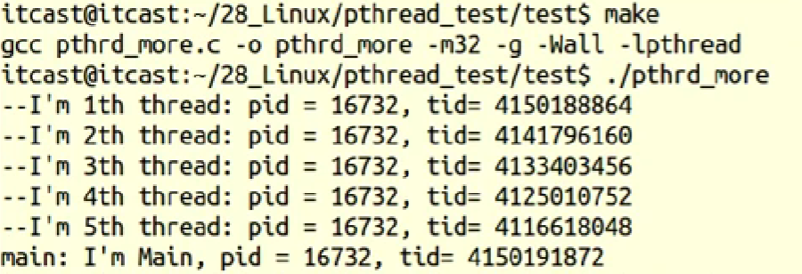 printf("---I'm %dth thread: pid = %d, tid = %lu\n", i+1, getpid(), pthread_self());