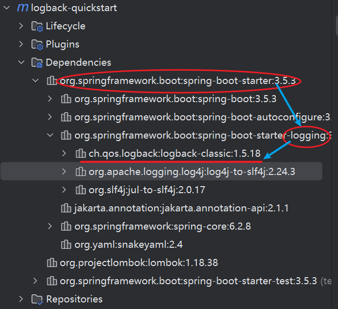 引入logback的依赖(springboot项目中无需引入,在springboot中已经传递了此依赖)