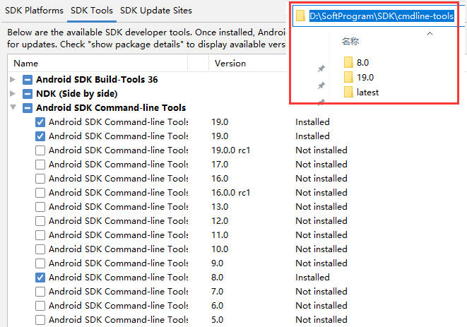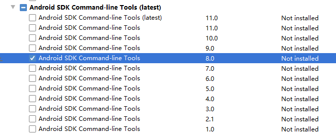 Android SDK 系统设置中,点击 SDK工具标签,修改Android SDK Command-line Tools 8.0版本