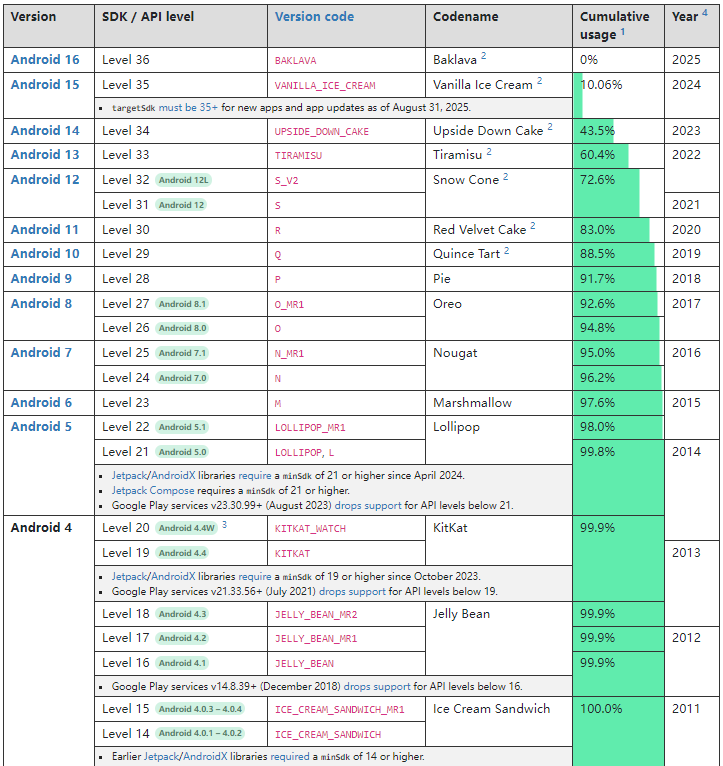 | 5.6 | Koala 2024.1.2 2024年8月29日 | 推荐版本:SDK 34 最低版本:SDK 26 | NDK r27c | 不同商城对于目标SDK最低版本的要求是不同的,可能与上文有所不同。 |