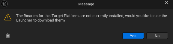 报错提示:The Binaries for this Target Platform are not currently installed, would you like to use the Launcher to download them?