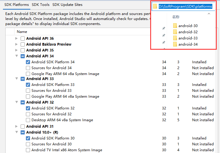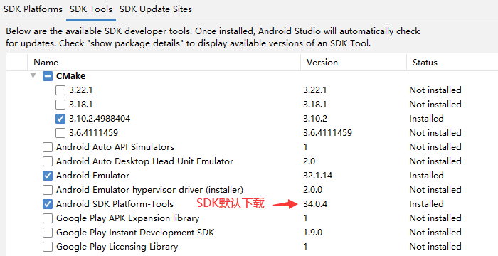 如图,当时默认下载的版本34,为最新版的Android SDK Platform-Tools