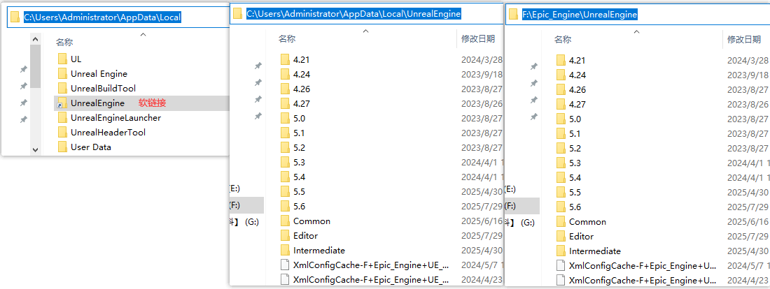mklink /d C:\Users\Administrator\AppData\Local\UnrealEngine F:\Epic_Engine\UnrealEngine