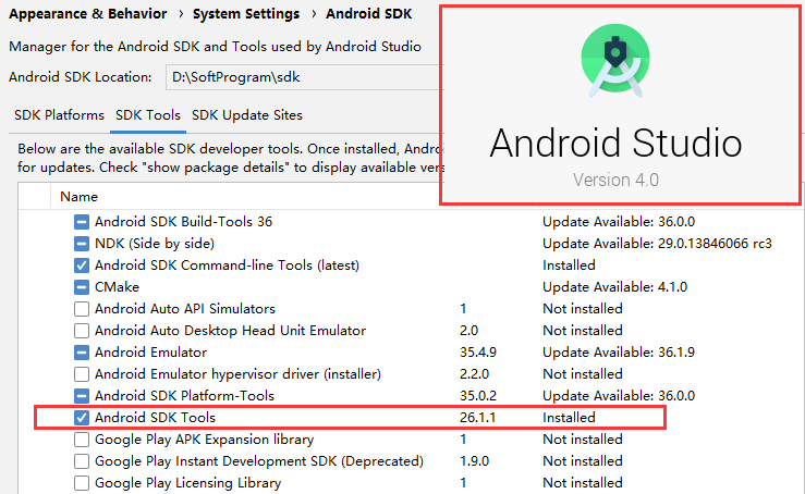 Android SDK Tools 旧版本Android Studio 4.0有这选项,新版本无,不用在意。