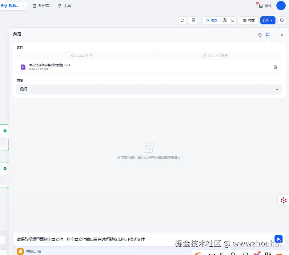 接下来我们上传一个视频需要提取这个视频里面的字幕信息,这个也是非常实用的。在短视频制作这块我们有时候需要别人的视频字幕,但是原始字幕文件srt没有,这个时候我们就可以借助qwen3-vl 多模态模型来提取视频里面字幕文件。