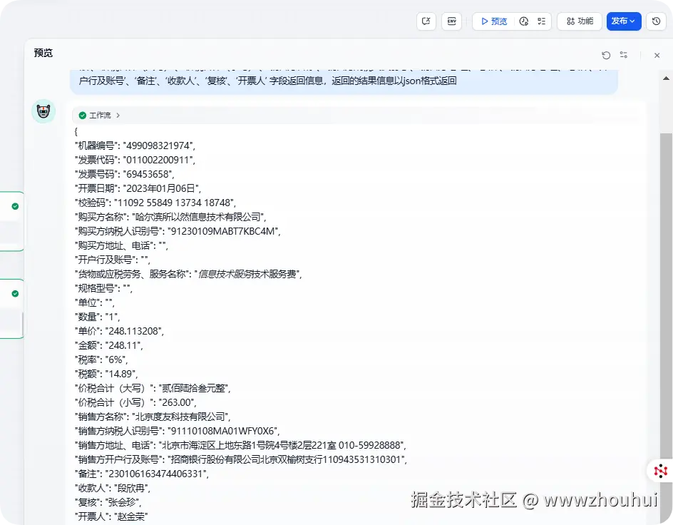 也是非常轻松的100%识别发票的票面信息。我记得去年使用qwen2.5-vl-72b多模态模型这个发票还不能做到100%的识别。