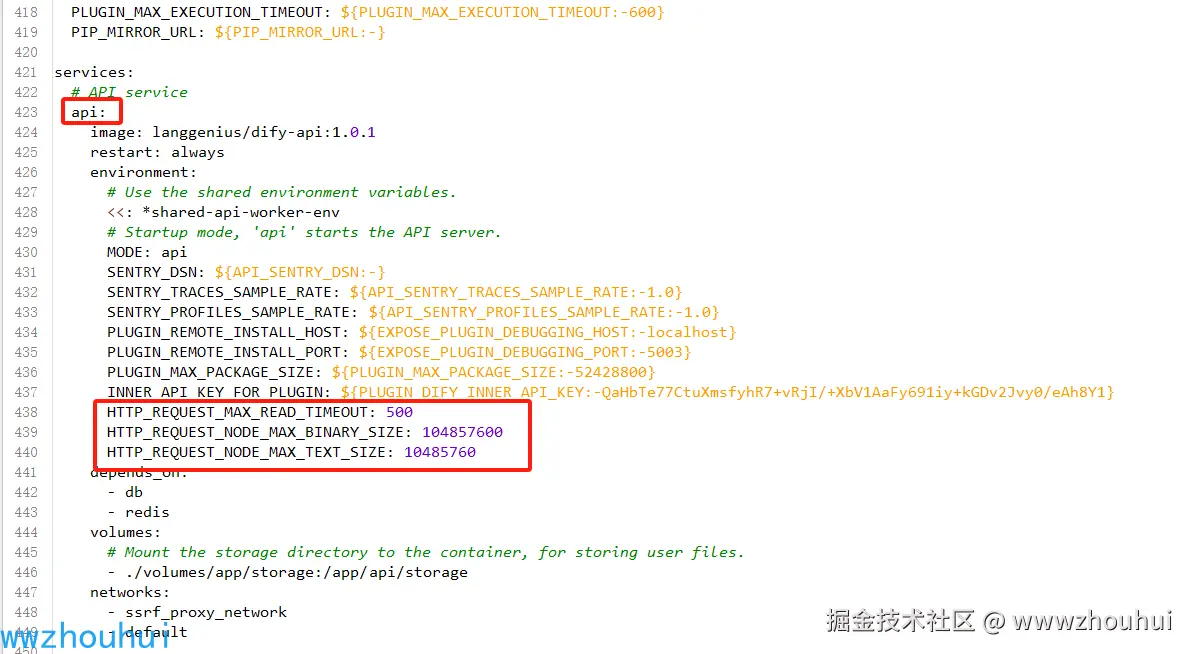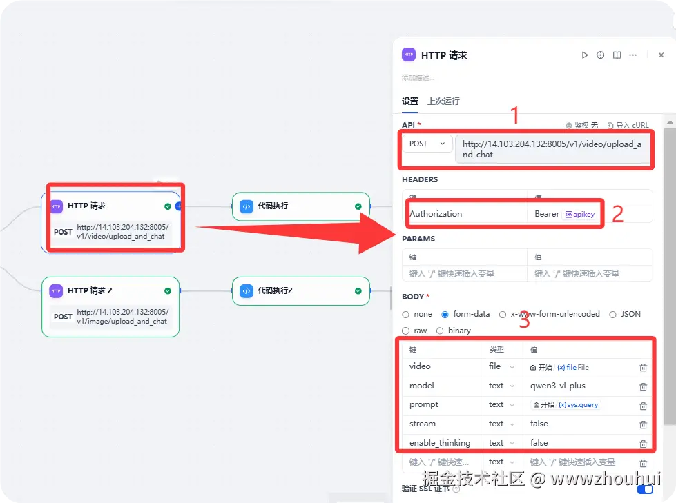 由于使用到了视频上传,dify这里需要做一下设置。主要是http请求的超时时间和文件大小配置。目前搭建的服务器资源有限,对文件和视频超过10M以上的可能会出现超时返回错误的问题。大家可以找一个好的服务器或者本地部署这个服务。