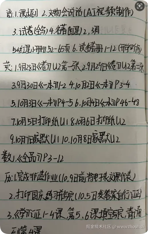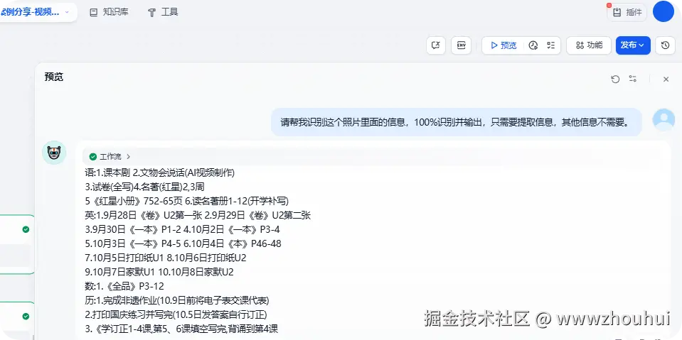 上面是一个国庆节假期作业清单,我们使用这个dify工作流来识别一下。