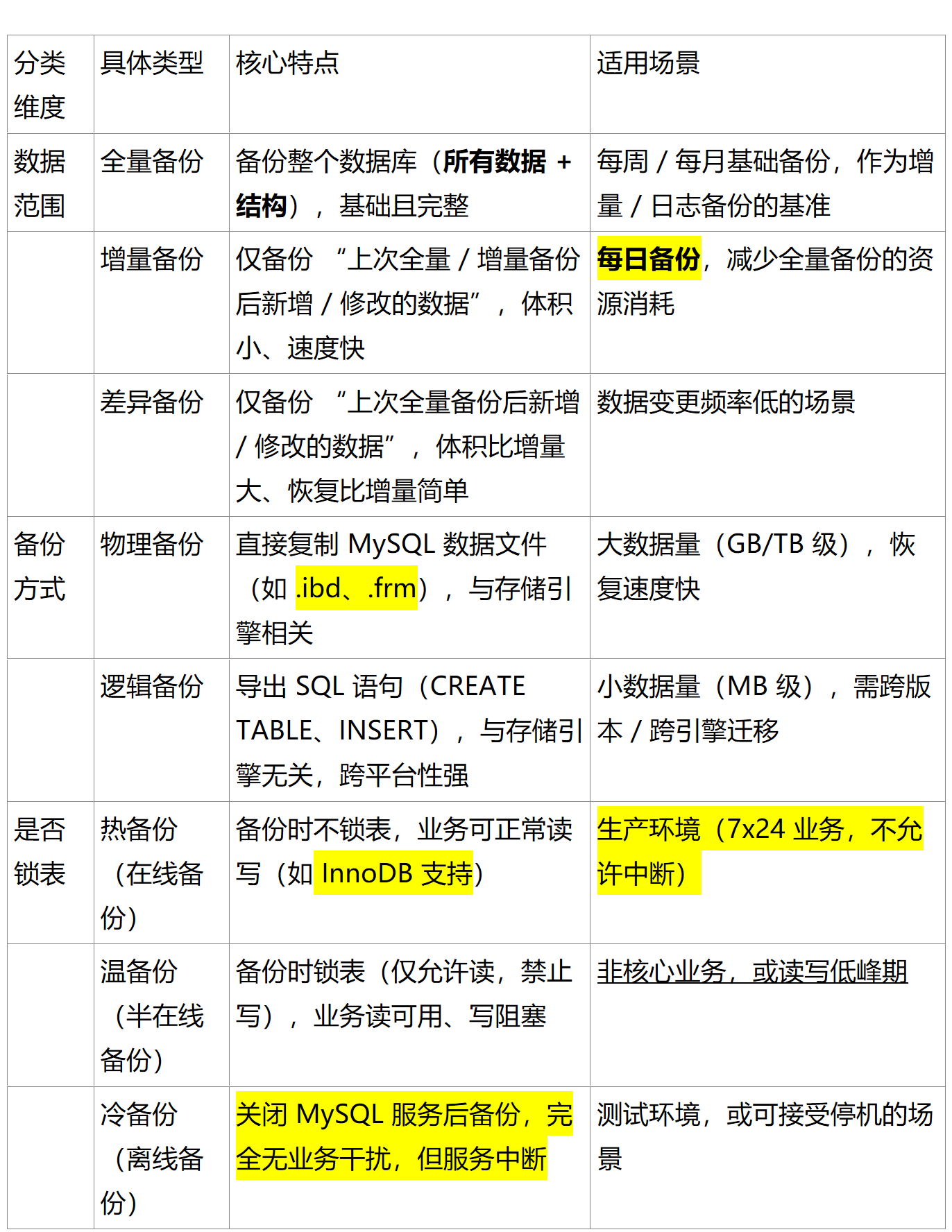 一、MySQL 备份类型:先明确 "备份什么""怎么备"