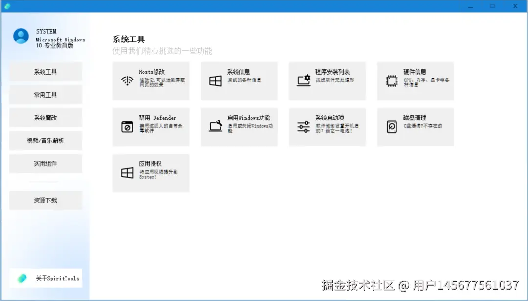 系统类功能非常全面,包含Hosts编辑、系统与硬件信息查看、已安装程序清单、启动项管理、Windows功能开关、Defender一键关闭,以及调用系统原生引擎的磁盘清理,安全又高效。