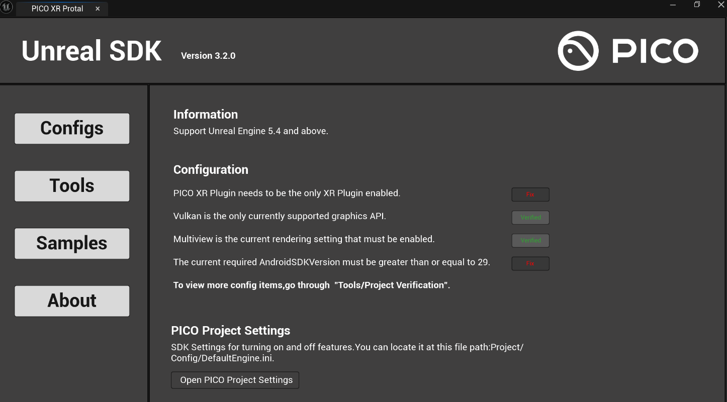UE5.4及以上的PicoXR插件多了一键项目环境检测的可视化功能模块