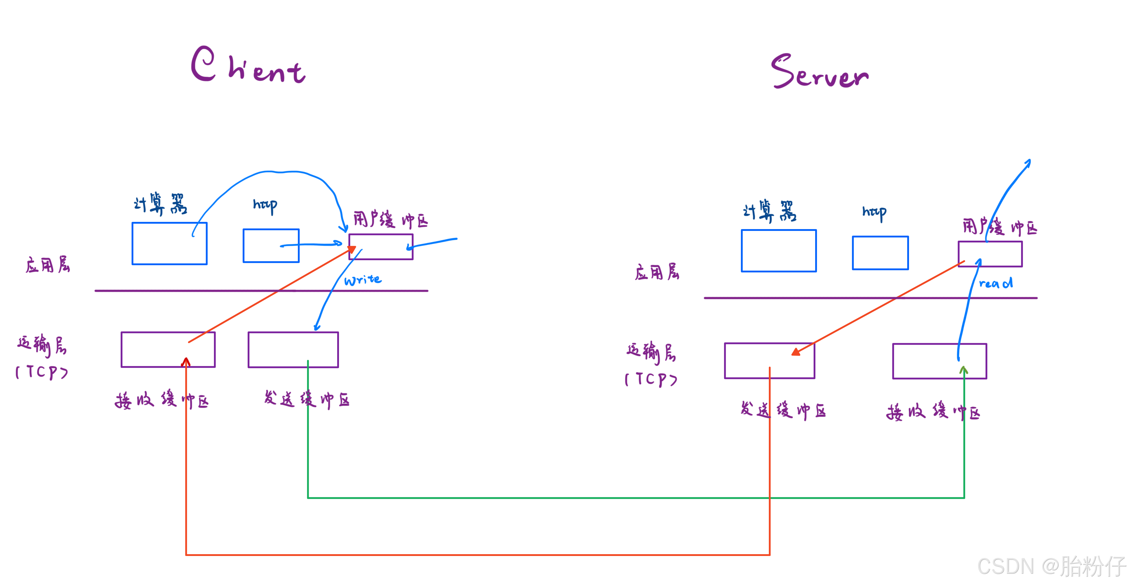 所谓的全双工通信,说白了就是 TCP 协议规定了每个进程每建立一个 TCP 连接,就会被分配到两个缓冲区------接收缓冲区和发送缓冲区,如上图所示。 因为接收方和发送方都各有两个缓冲区,因此发送方的发送与发送方的接收互不影响;接收方的发送和接收方的接收也互不影响;所以在客户端发数据给服务器的同时,服务器也可以发数据给客户端。于是这个连接就可以同时双向传数据了,这就构成了全双工通信。