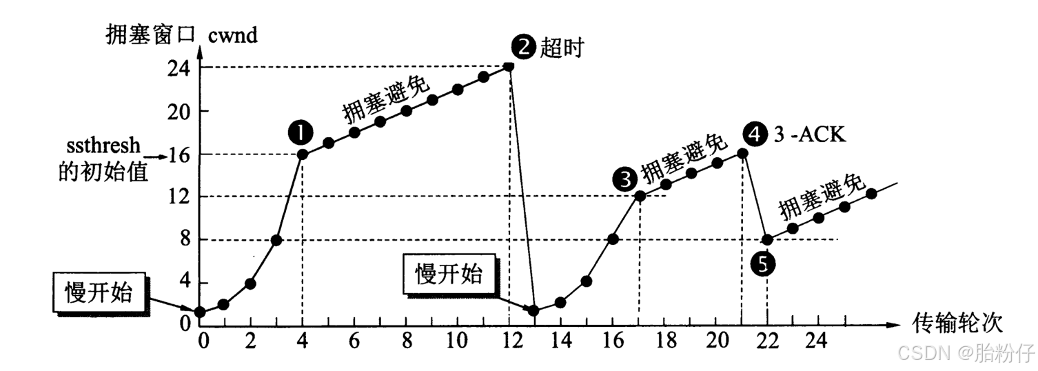 正常来说,当发送窗口(即拥塞窗口)大小达到 ssthresh 后,就会进入拥塞避免状态------每次发送窗口大小只加一;而如果发送窗口的大小小于 ssthresh,每次发送窗口大小会变为上一次的 2 倍;而如果遇到超时重传的情况,发送窗口的大小就又会重新变为 1.