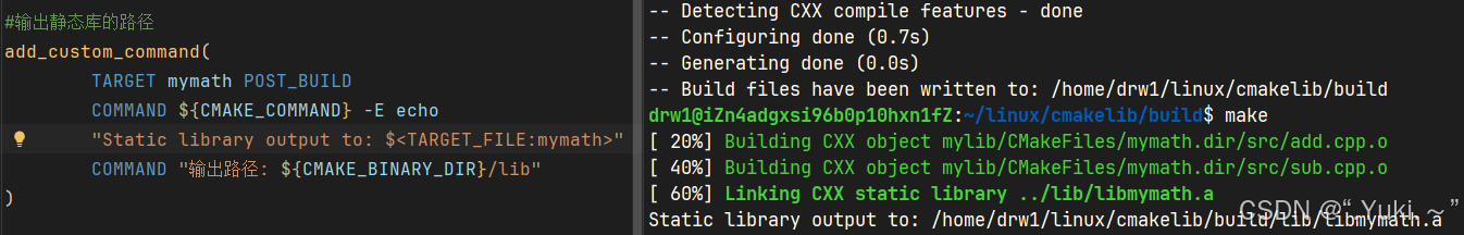 在cmake里当添加一个目标比如静态库后,cmake会在配置阶段自动跟踪静态库的输出位置,