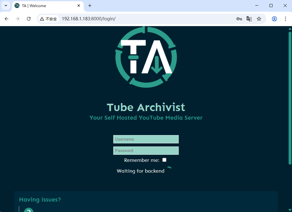 6,打开浏览器访问地址 http://你的服务器 IP:8000 ,就能看到你部署的 TubeArchivist 登录界面了。