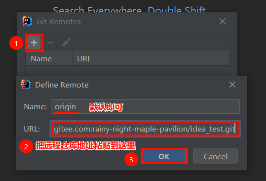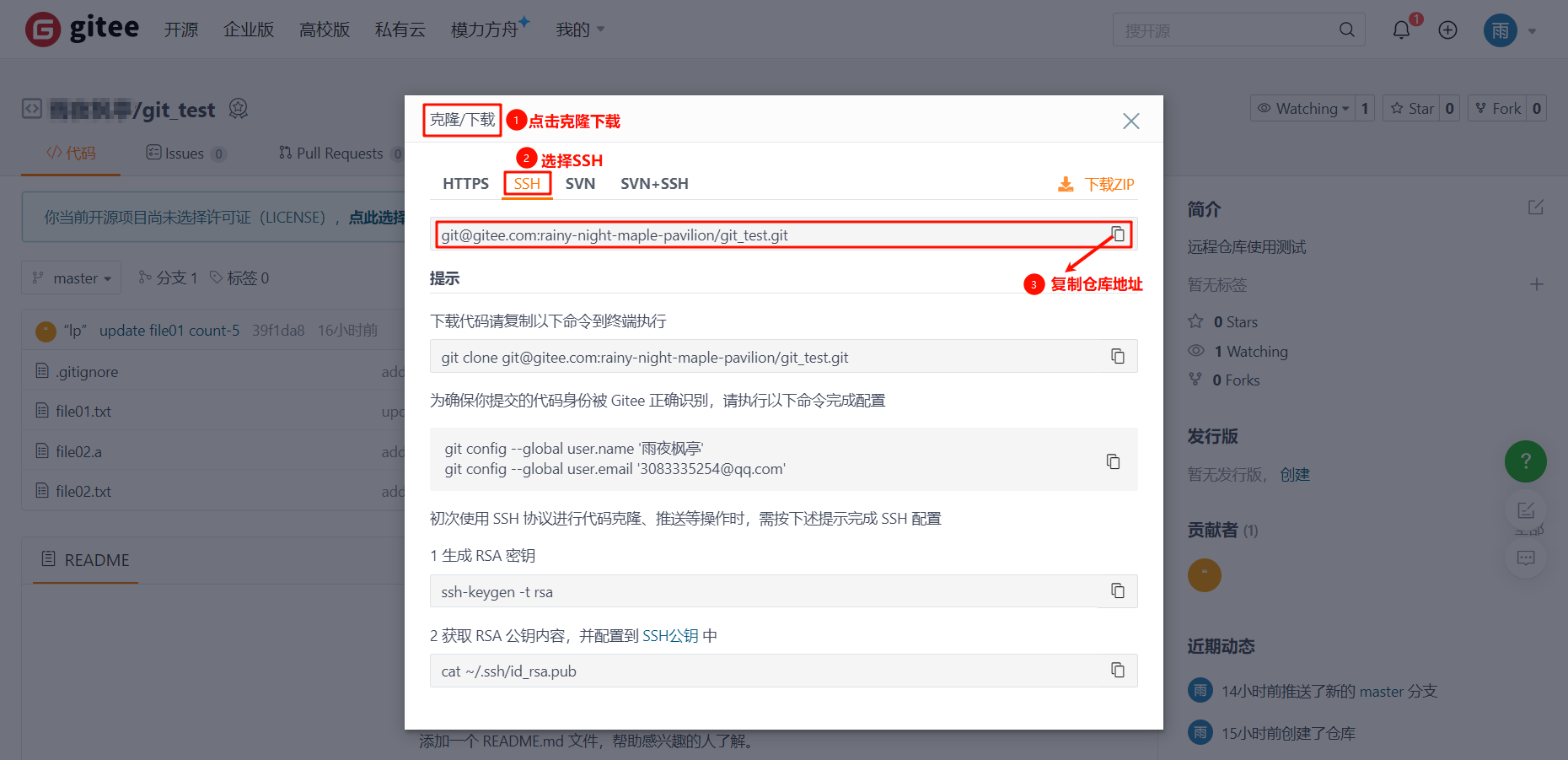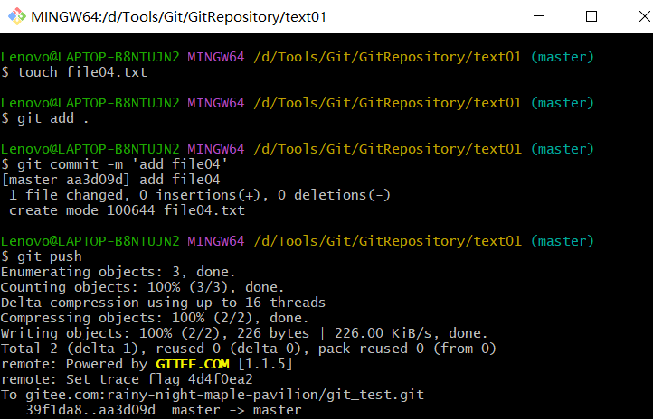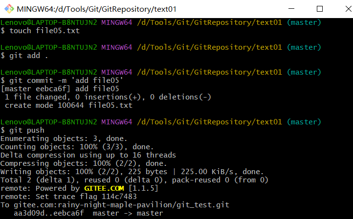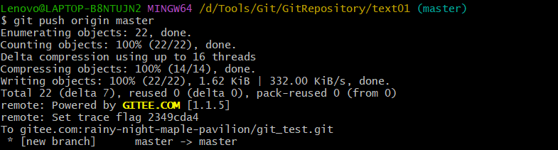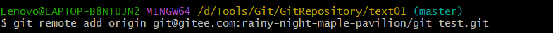 - 例如:git remote add origin git@gitee.com:rainy-night-maple-pavilion/git_test.git