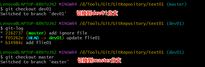 - 切换分支前先提交本地的修改