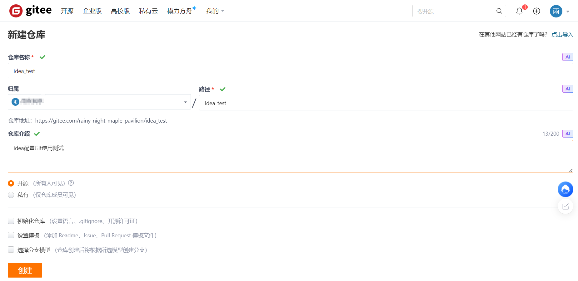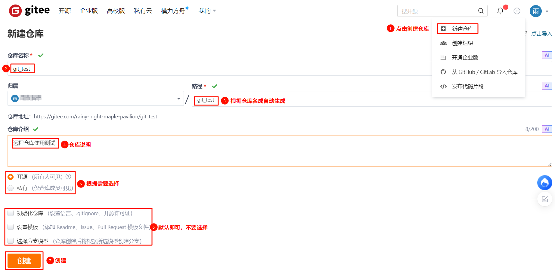 5.2.1 创建项目远程仓库(参照4.3)