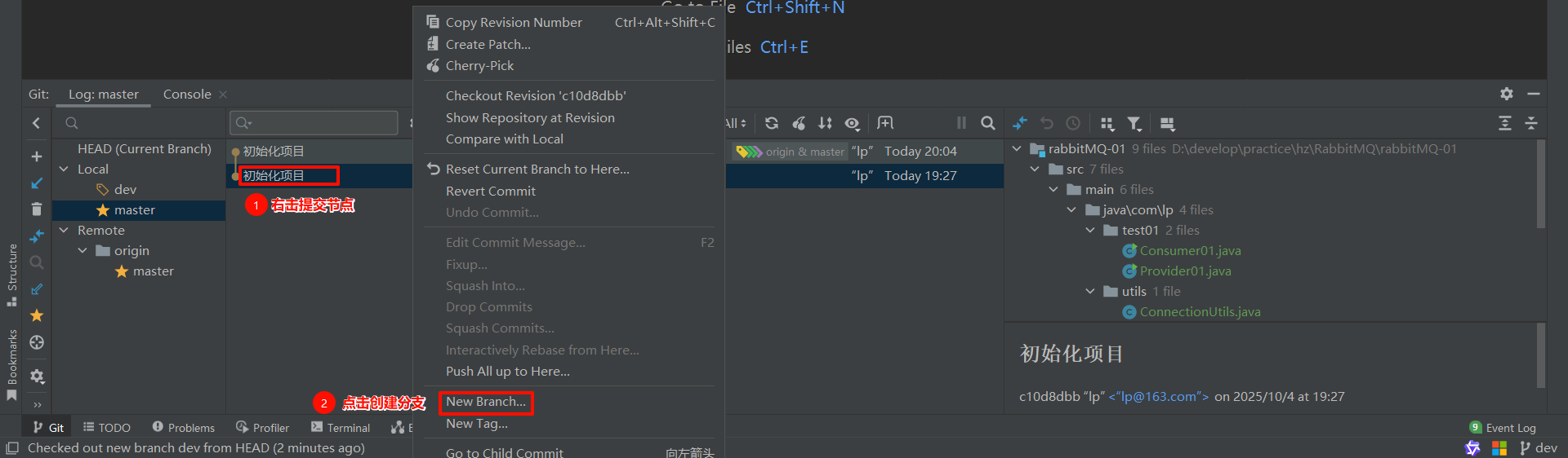在指定的提交节点创建分支