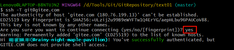 ssh -T git@gitee.com