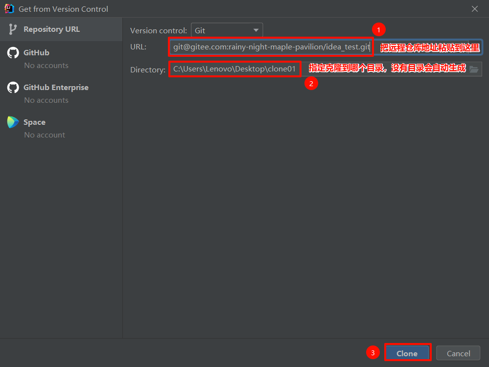 复制要克隆的远程仓库地址