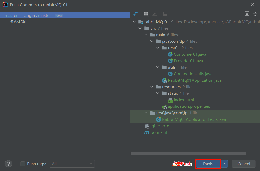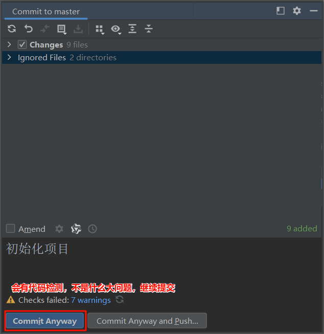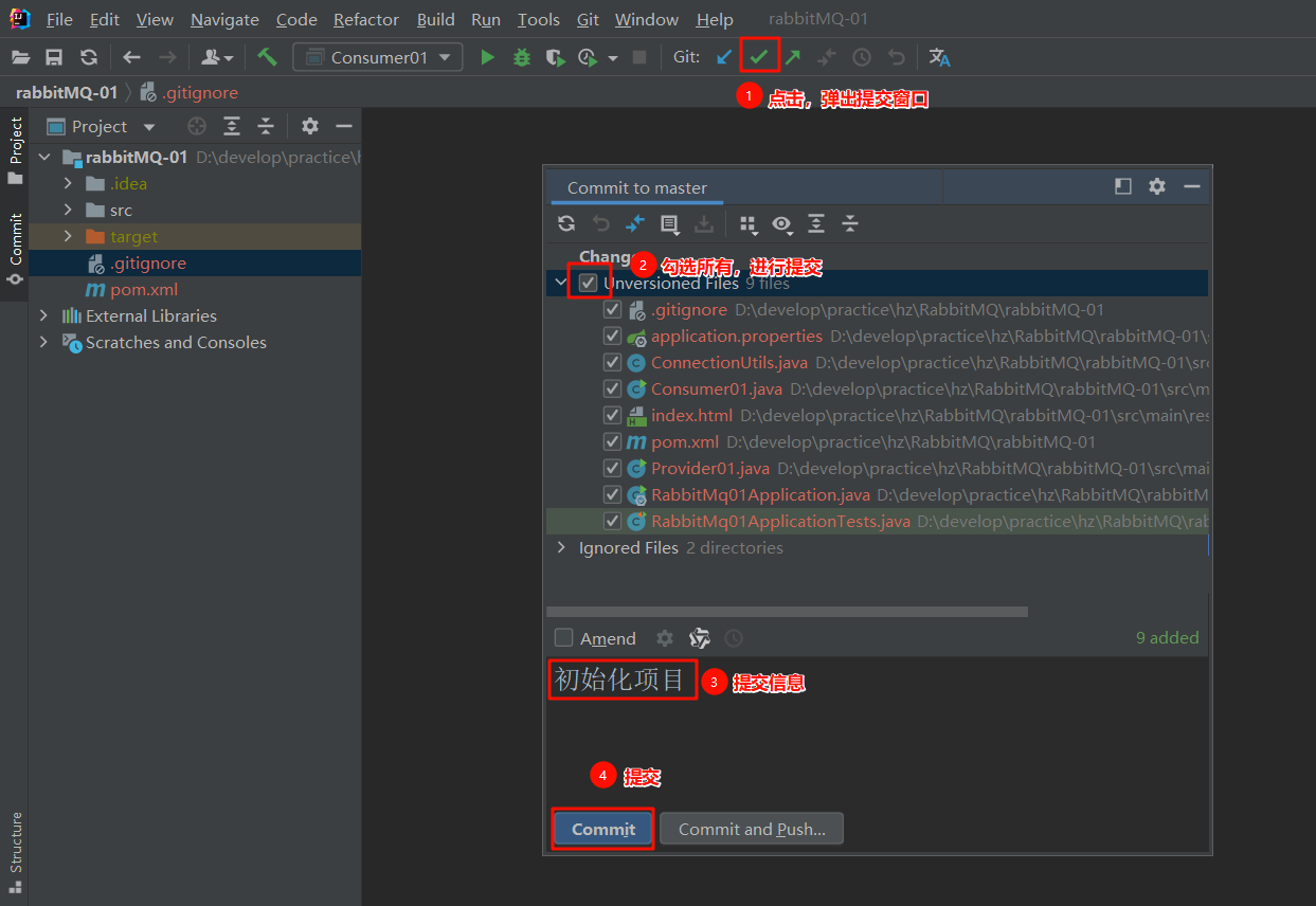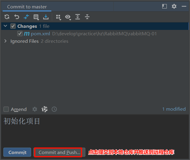 再提交到本地仓库并推送到远程仓库(Commit and Push)。